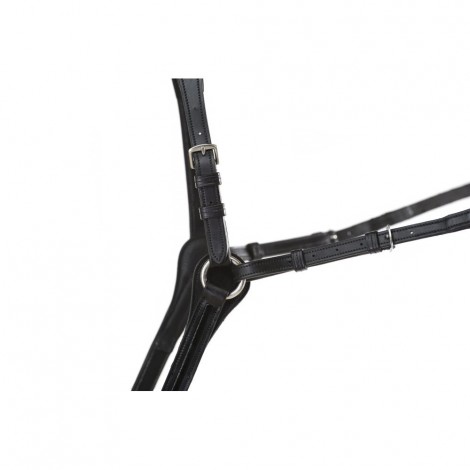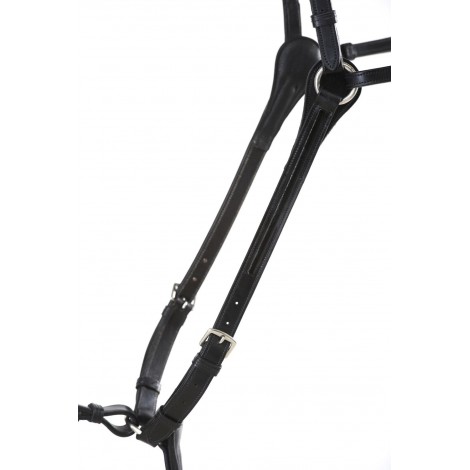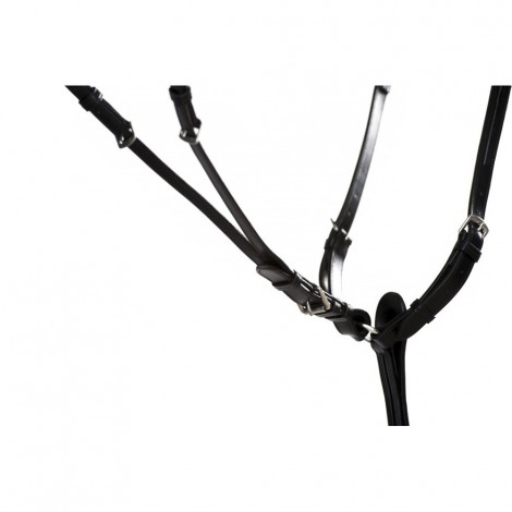 Collier de chasse trois points se fixant sur les sanglons et évitant les pressions au niveau du garrot. Pont large et anatomique pour libérer le garrot. La martingale est réglable et amovible.