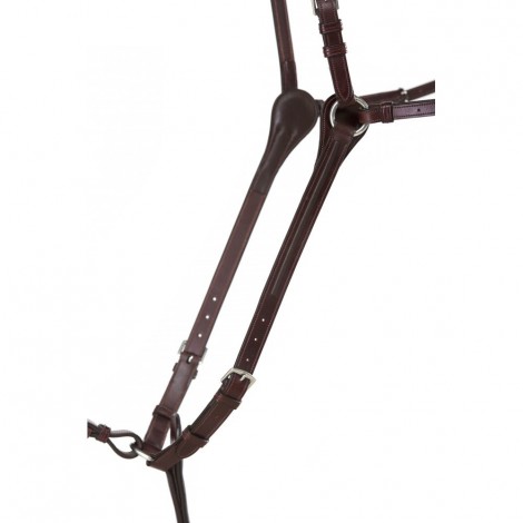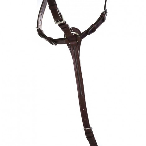 Collier de chasse trois points se fixant sur les sanglons et évitant les pressions au niveau du garrot. Pont large et anatomique pour libérer le garrot. La martingale est réglable et amovible.