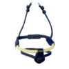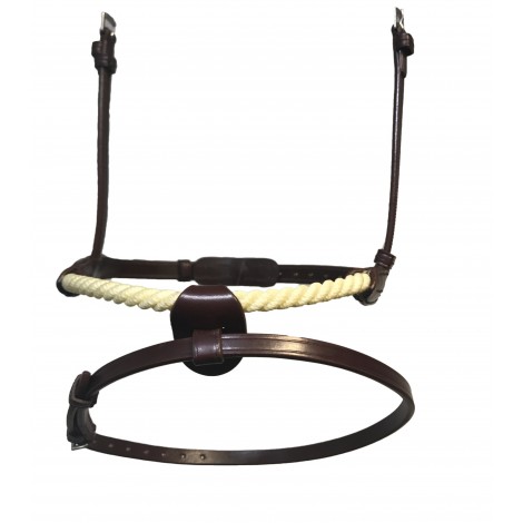 Ce modèle combine l’effet d’une muserolle française avec positionnement de la partie supérieure sous l’arrête zygomatique, avec l’action de la corde sur le chanfrein qui permet un meilleur contrôle. Le noseband amovible en cuir fournit avec la muserolle permet de rajouter un effet de fermeture sur la bouche du cheval. Cette muserolle aura donc une action beaucoup plus forte qu’une muserolle combinée en cuir.