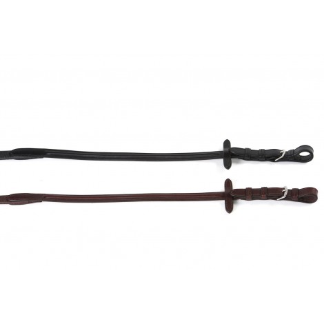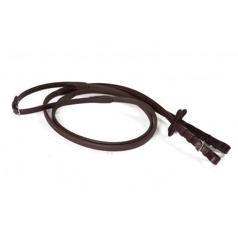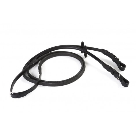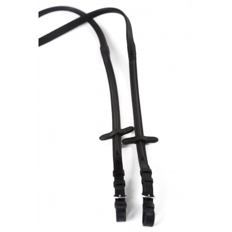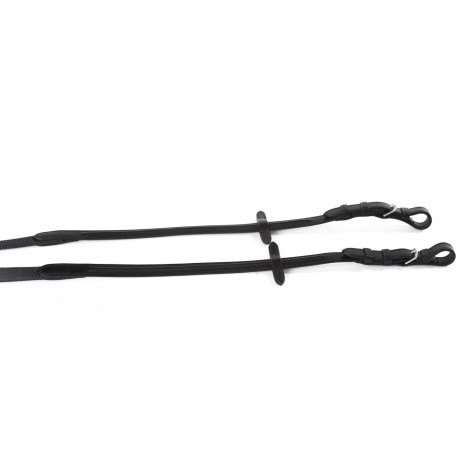 Rênes en caoutchouc aux finitions demi-rondes et piqûres ton sur ton.