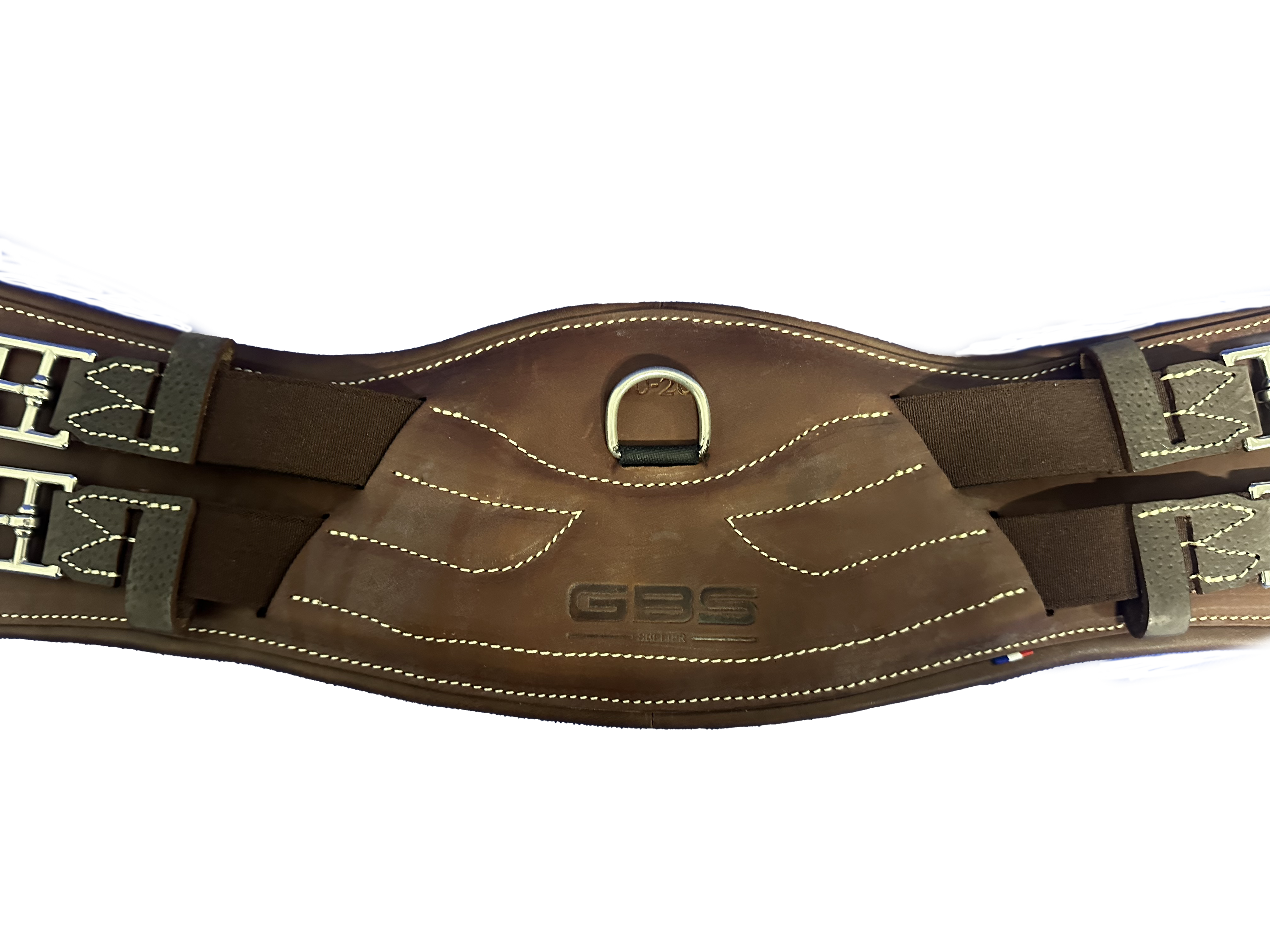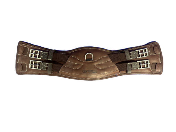 Un mousqueton central permet la fixation des divers enrênements. Les sanglons sont équipés de rouleaux pour faciliter et optimiser le sanglage de votre selle GBS.