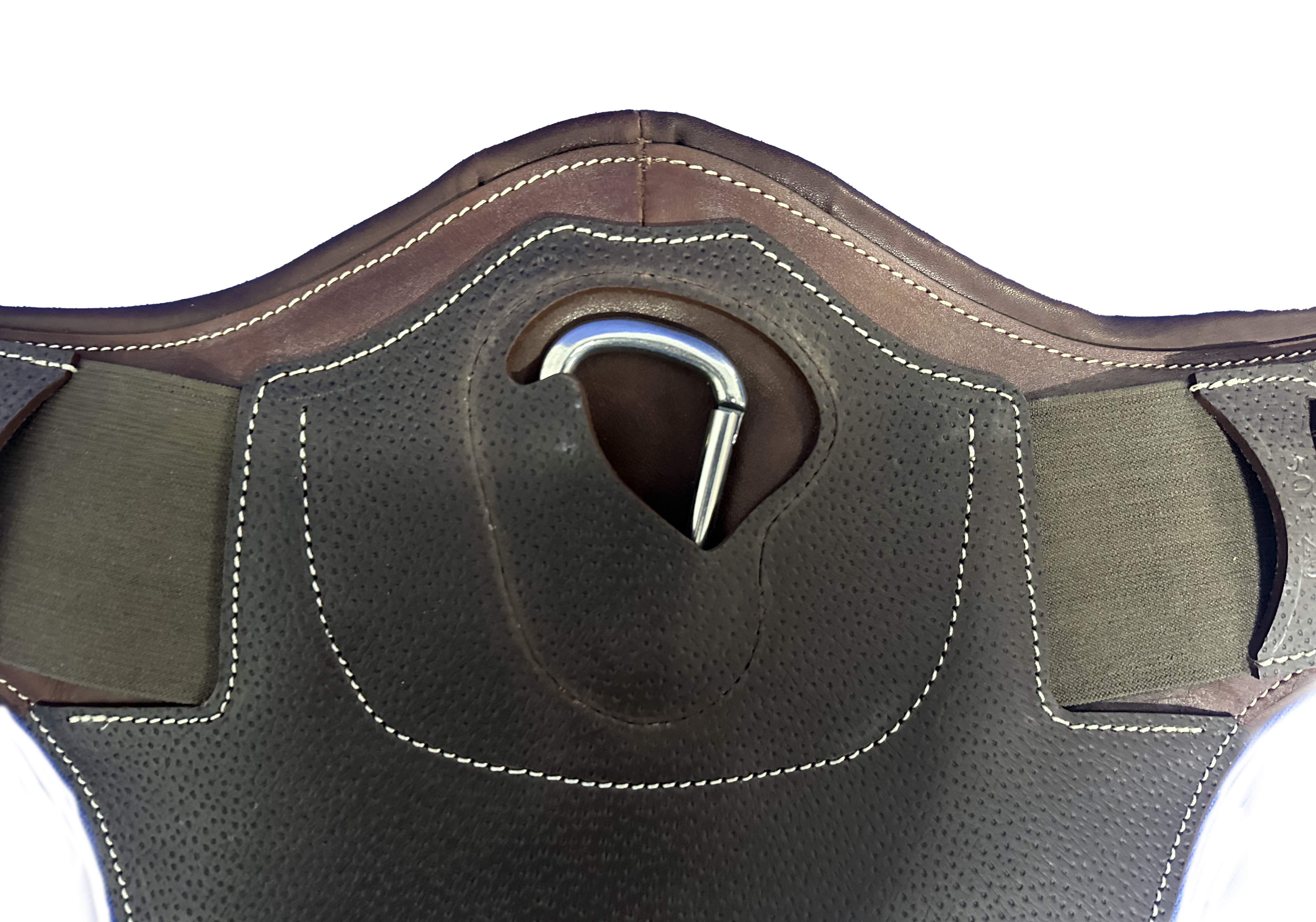 Un mousqueton central permet la fixation des divers enrênements. Les sanglons sont équipés de rouleaux pour faciliter et optimiser le sanglage de votre selle GBS.