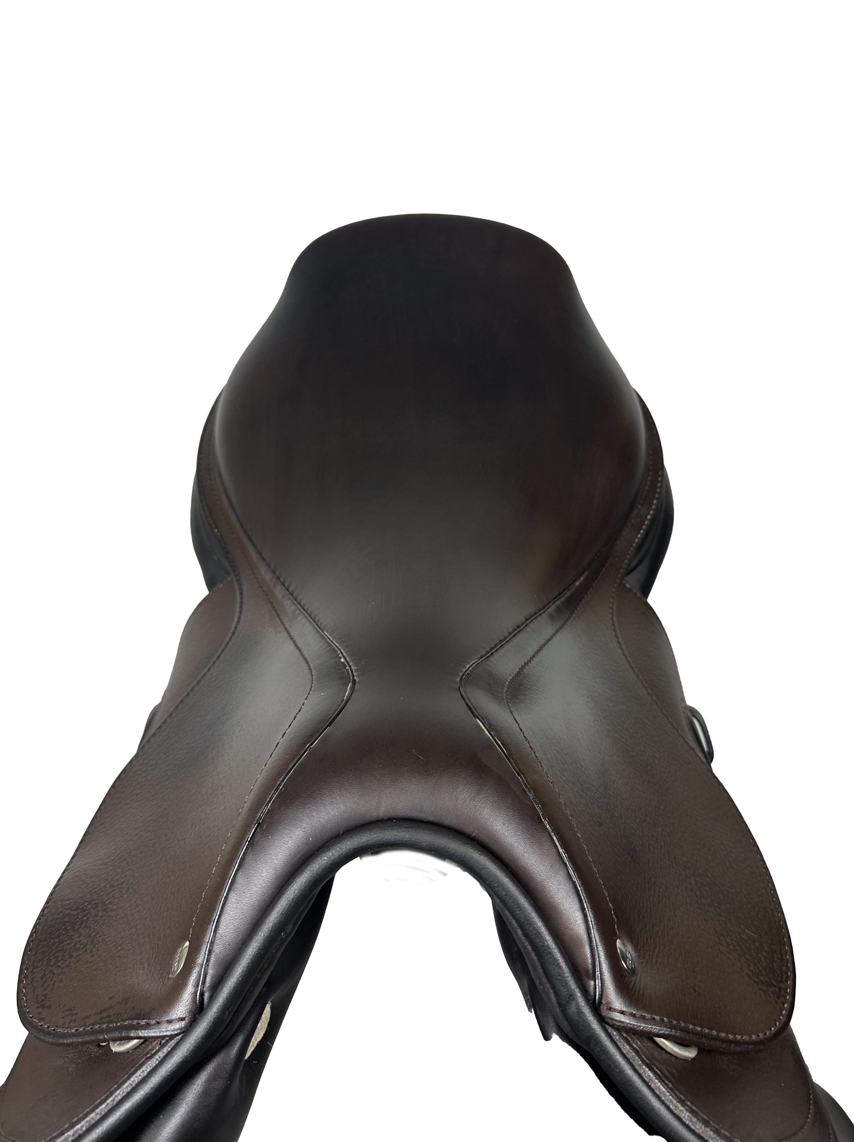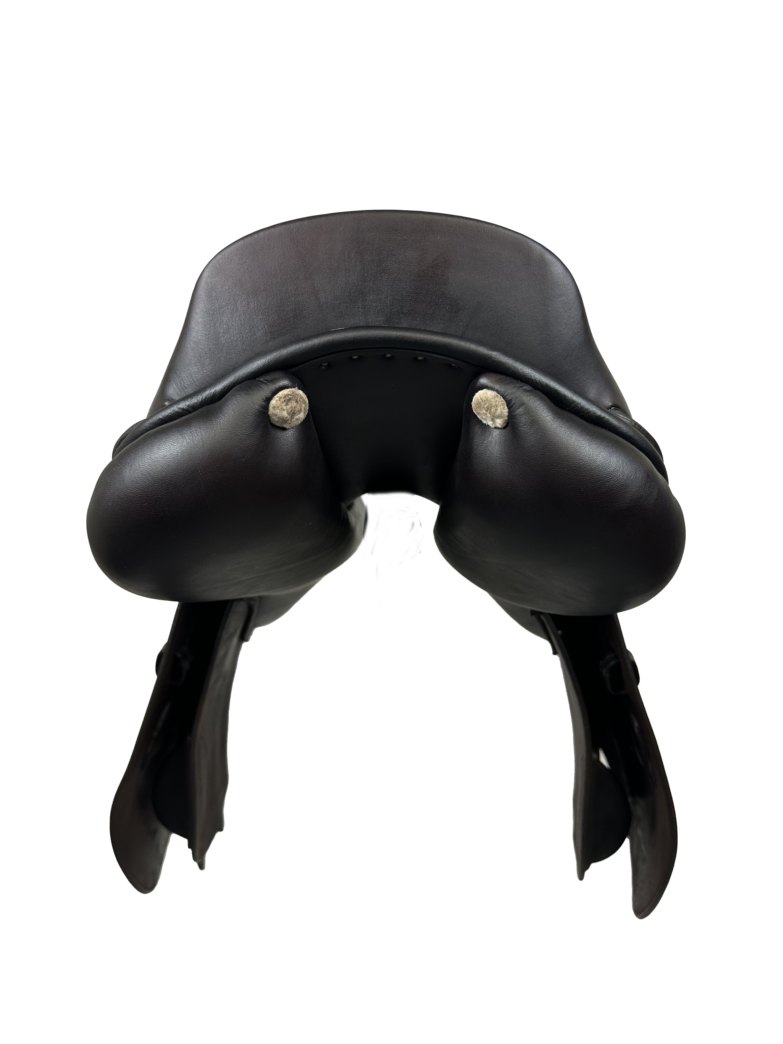 Cette selle possède un siège en 17,5′ et des quartiers plus petits qui conviendront aux cavaliers ayant un fémur court.  Les panneaux seront adaptés à une majorité de chevaux et favoriseront l’enclenchement du bassin du cavalier.